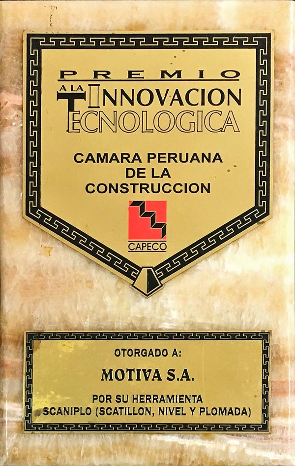 Por el invento EL ESCANIPLO. Lima 2000. Premio otorgado a los gerentes de la empresa.